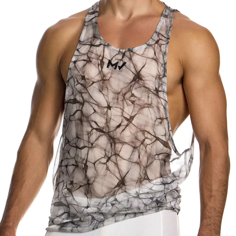 Débardeur semi-transparent en mousseline ultra légère, fluide et confortable. Imprimé original représentant l’un des 4 éléments de la nature. Larges ouvertures sous les bras. Coupe ample. Logo MV en silicone sur la poitrine.