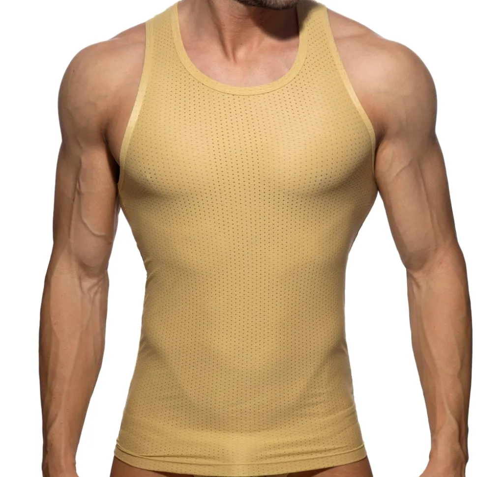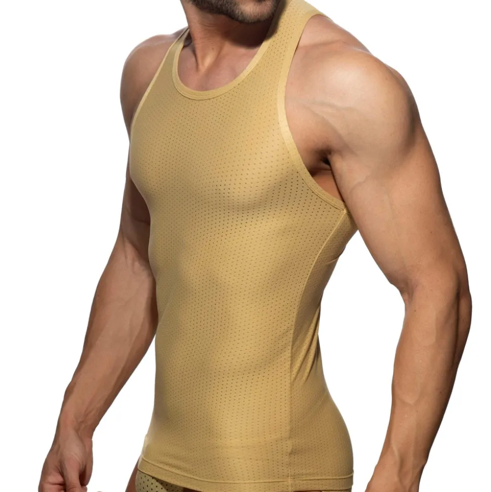 Débardeur sport et sexy en micro mesh respirant, léger et confortable de couleur unie. Coupe moulante avec col rond. Logo Addicted en silicone en haut du dos.