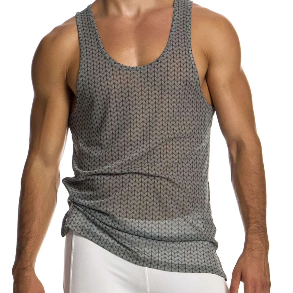 Débardeur sexy et original en résille fine, légère et semi-transparente. Impression en trompe-l’œil créant l’illusion d’un tissu tricoté. Col rond et larges ouvertures sous les bras. Echancré sur les côtés. Etiquette Modus Vivendi en silicone cousue dans le dos.