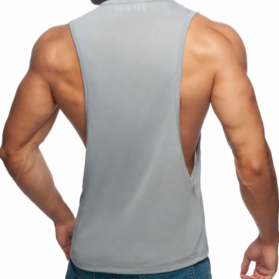Débardeur en tissu très fin et confortable, idéal pour le sport. Large ouvertures sous les bras. Imprimé Addicted ton sur ton sur la poitrine gauche et dans le dos.