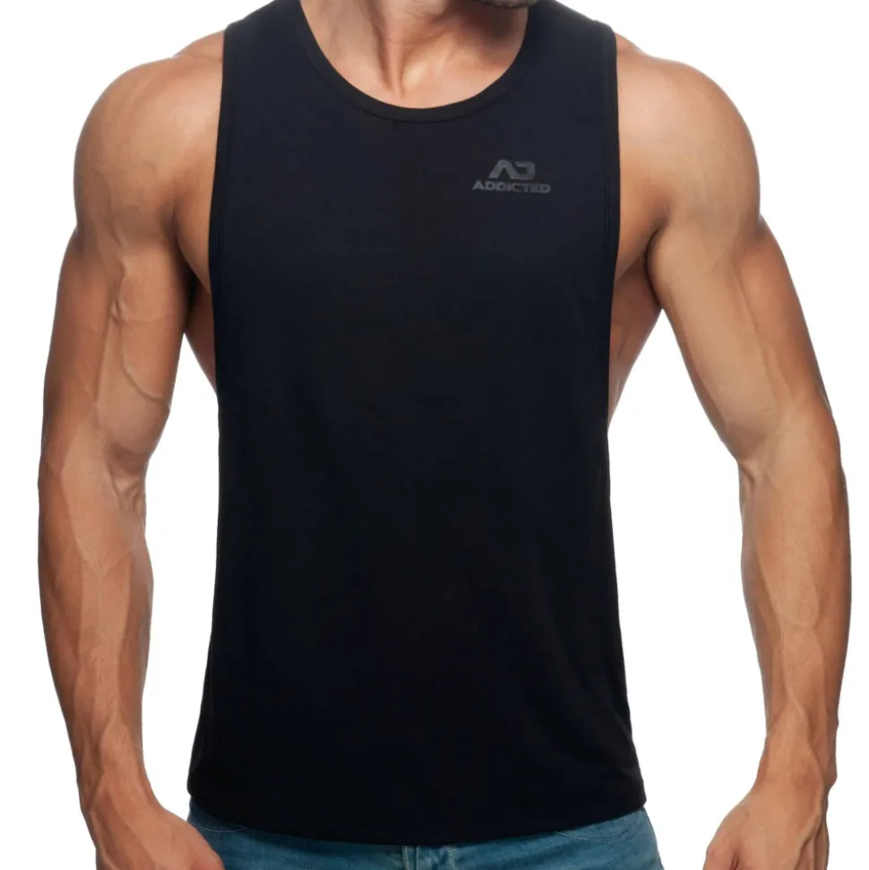 Débardeur en tissu très fin et confortable, idéal pour le sport. Large ouvertures sous les bras. Imprimé Addicted ton sur ton sur la poitrine gauche et dans le dos.