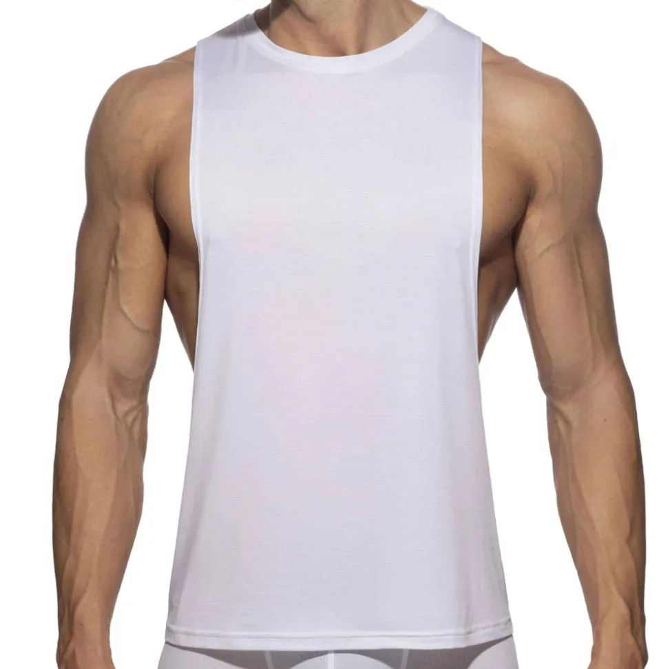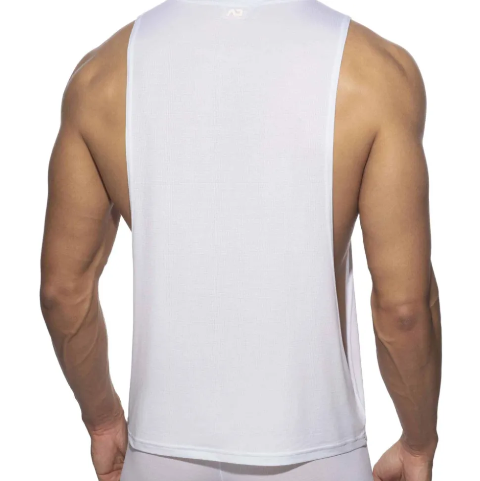 Débardeur sport en microfibre déperlante ultra-légère qui séche incroyablement vite. Large ouvertures sous les bras. Logo AD en silicone dans le dos.