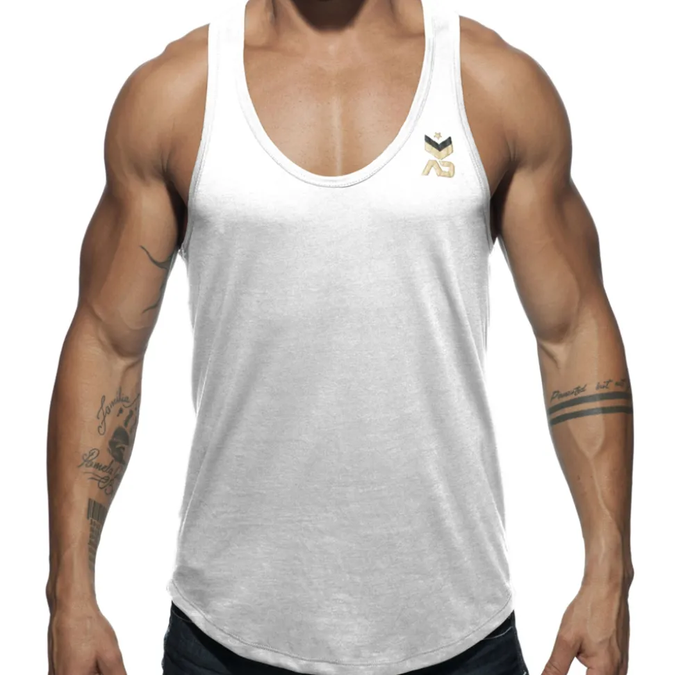 Débardeur en pur coton doux et confortable. Coupe ajustée, col profond et dos nageur. Badge militaire et logo AD brodés sur la poitrine. Fabriqué à Barcelone.