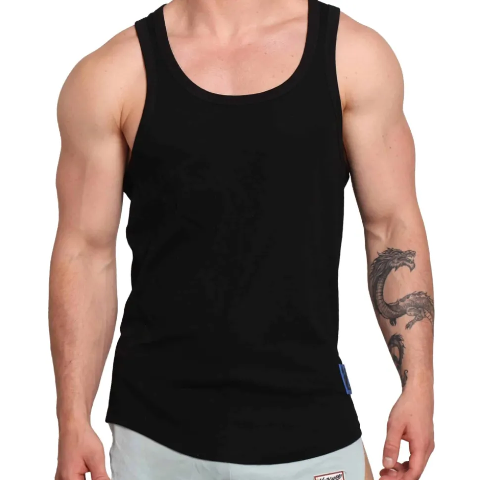 Débardeur sport-chic en coton doux et extensible. Coupe décontractée, arrondie en bas, pour tomber parfaitement sur un pantalon. Patch en silicone signé Marcuse sur la hanche gauche et logo brodé à l’arrière.