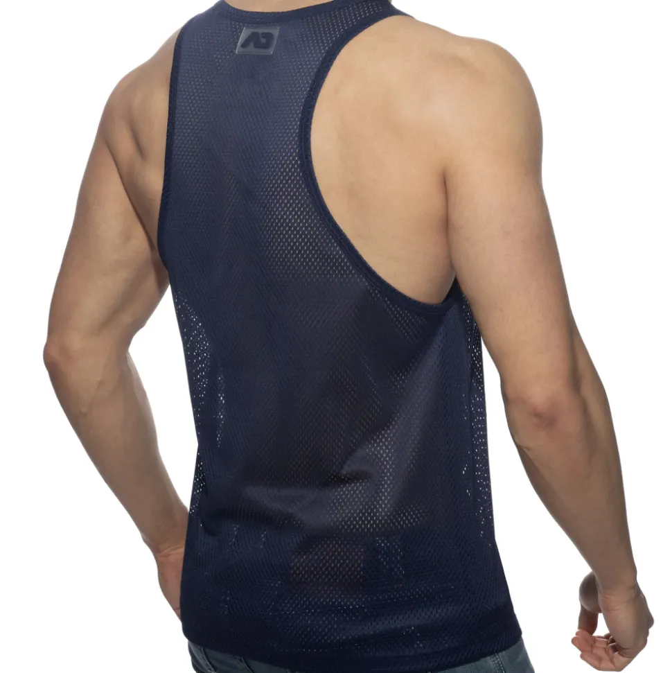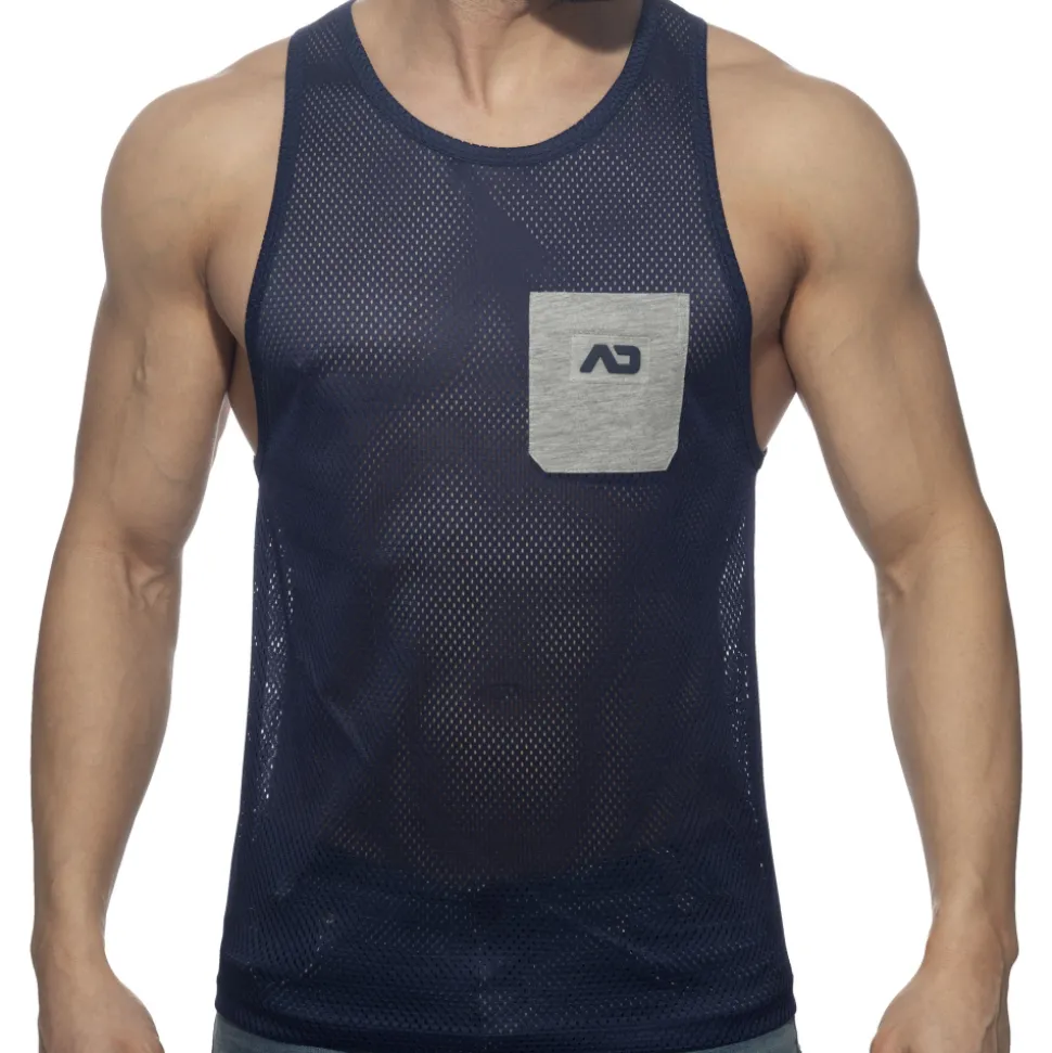 Débardeur en mesh doux et respirant. Poche factice de couleur contrastée sur la poitrine, avec logo AD en silicone. Coupe ajustée, dos nageur et col rond.