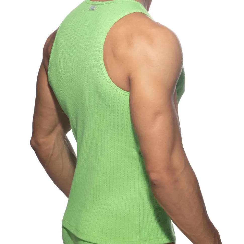 Débardeur confortable en mélange super doux et extensible de coton et de microfibre. Tissu chaud, côtelé et moelleux, conservant cependant une légère transparence. Coupe ajustée avec col rond. Logo AD en silicone dans le dos.
