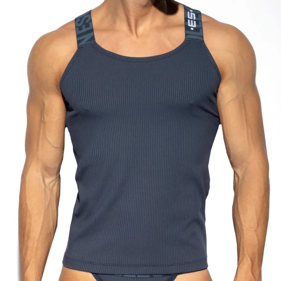 Débardeur en microfibre extensible côtelée de couleur unie. Tissu recyclé doux et antibactérien. Coupe très ajustée. Bandes élastiques ES Collection en guise de bretelles.