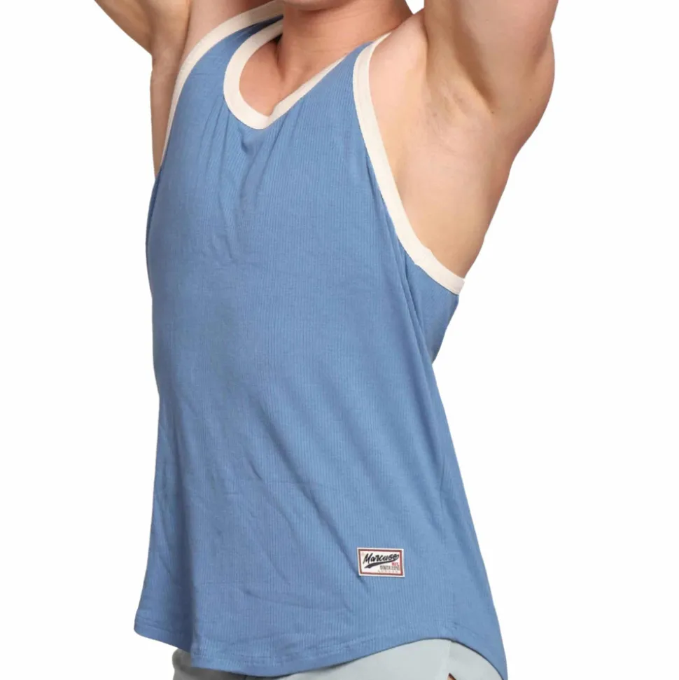 Débardeur ajusté en coton ultra doux et extensible, à effet côtelé élégant. Col et emmanchures contrastés. Coupe courte et arrondie en bas, pour tomber parfaitement sur un pantalon. Patch Marcuse sur la hanche gauche. Logo brodé à l’arrière.