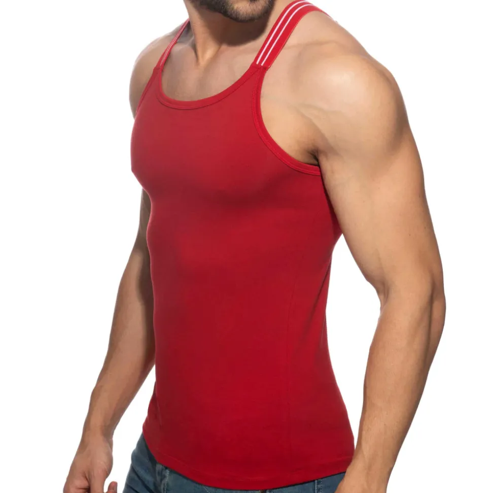 Débardeur très ajusté en coton doux, léger et confortable de couleur unie. Bretelles constituées de bandes élastiques. Logo AD en silicone en haut du dos.