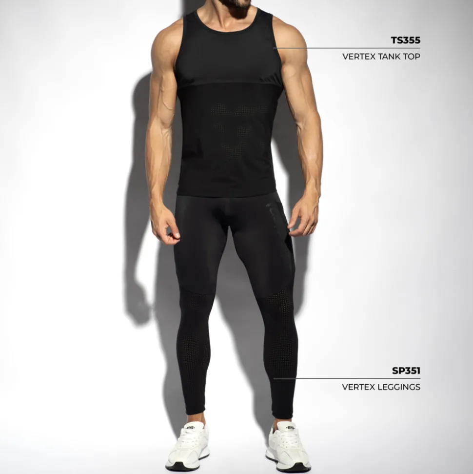 Débardeur technique en matière incroyablement douce et légère, combinant empiècements unis et inserts respirants en micro-mesh, pour une partique sportive intensive. Coupe ajustée et col rond. Logo ES Collection en 3D ton-sur-ton en haut du dos.