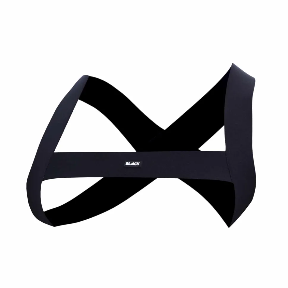 Harnais composé de bandes élastiquées. Design en H devant et en X dans le dos.