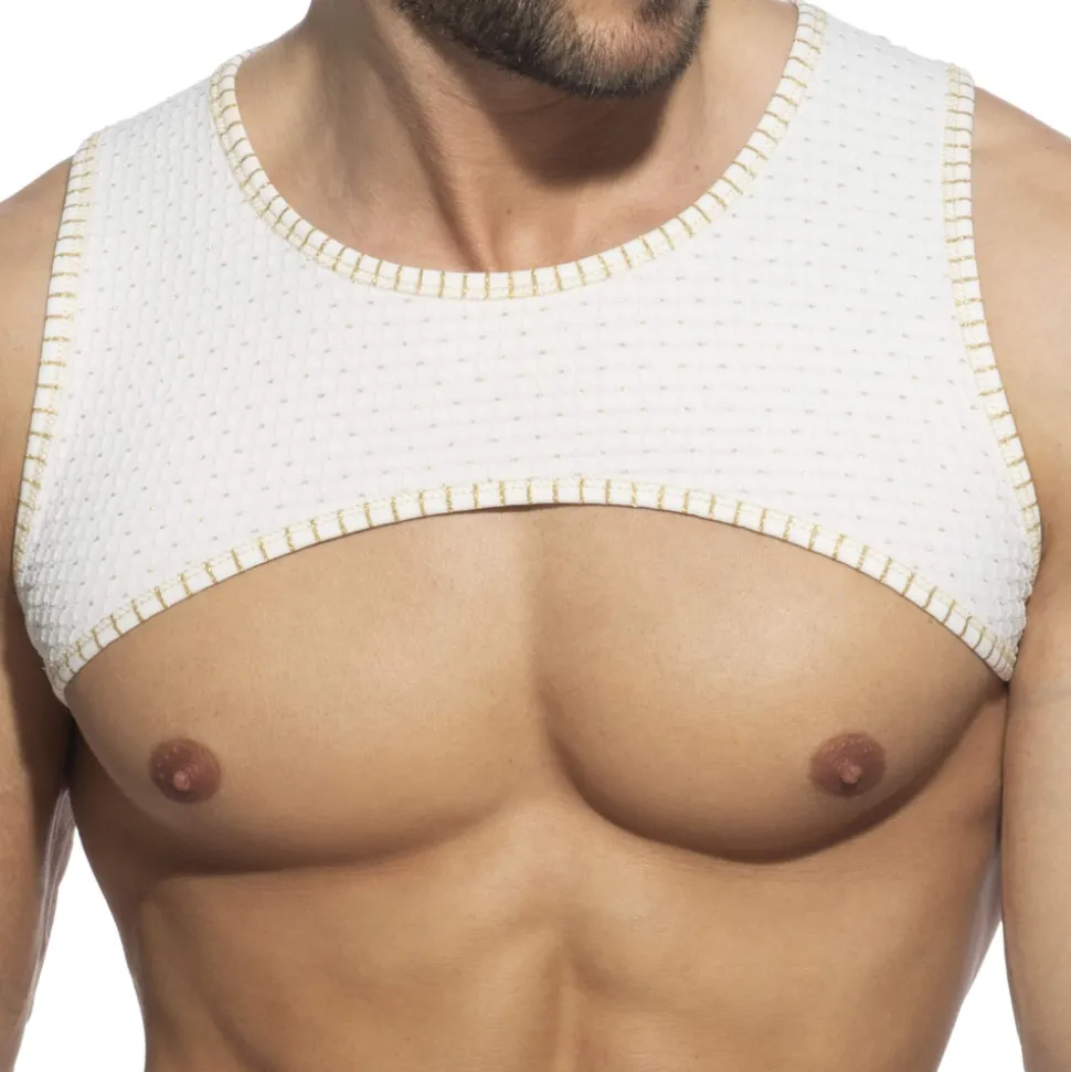 Harnais réversible en microfibre alliant élégance et confort. Grâce à la technologie U-Turn, il présente deux motifs distincts : fines rayures dorées d’un côté et pois dorés de l’autre. Logo AD en silicone à l’arrière.