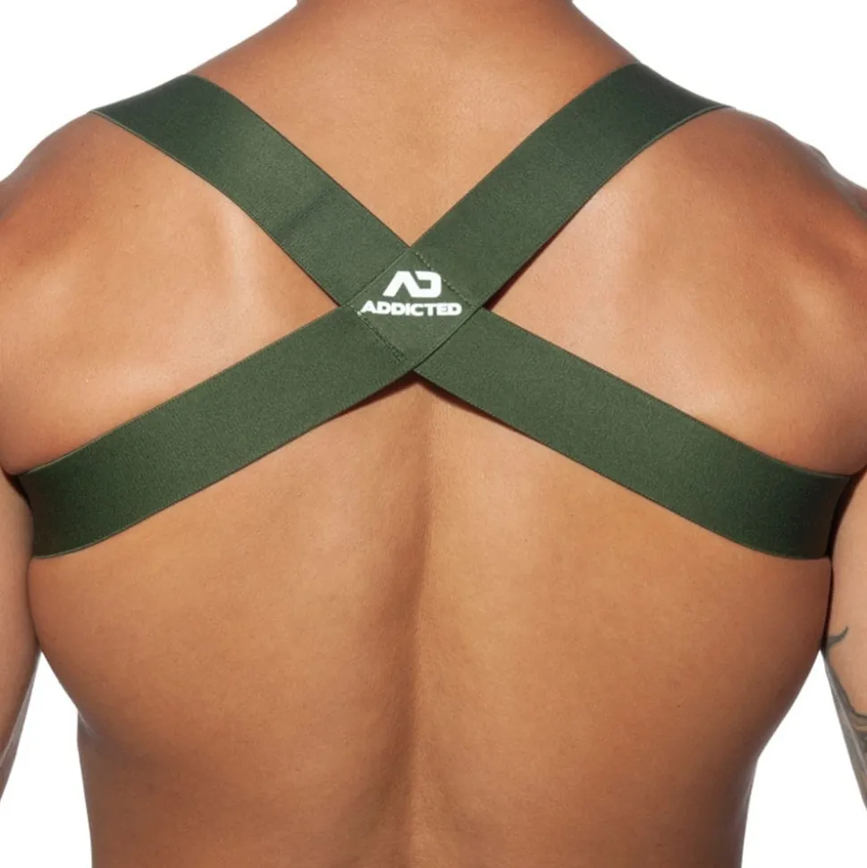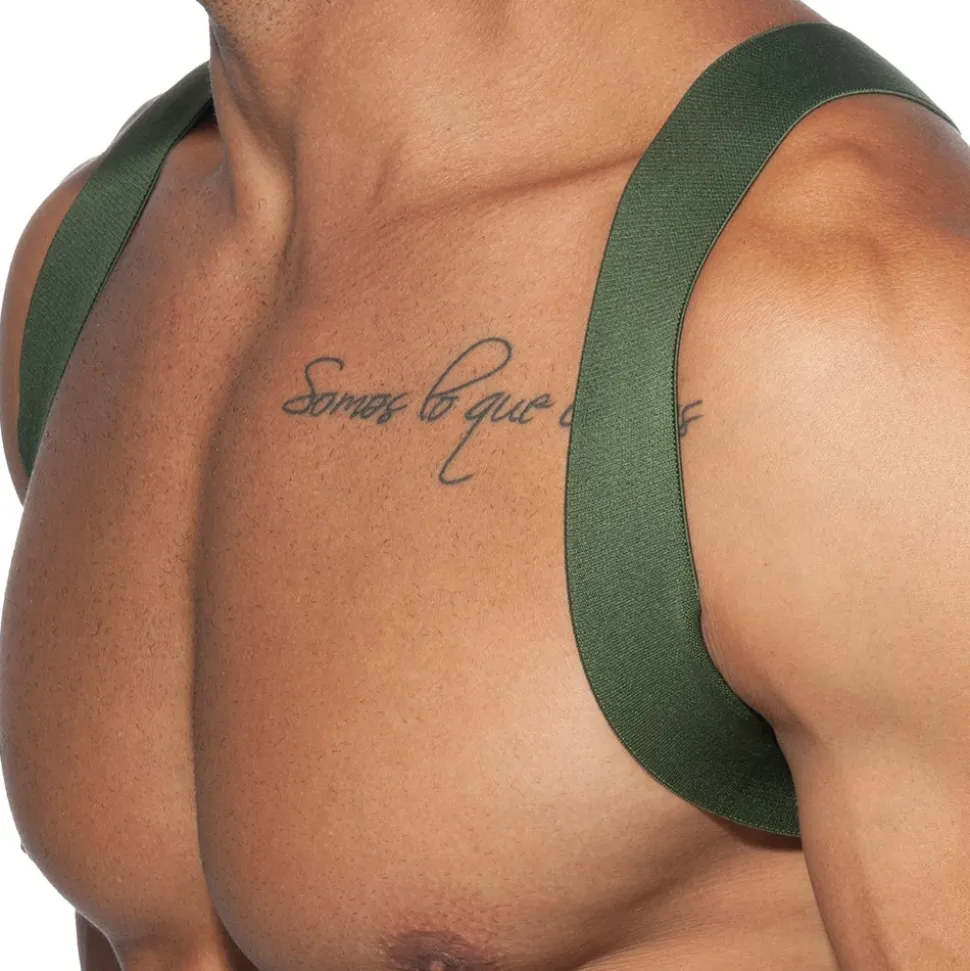 Harnais simple et confortable dont les larges bandes élastiques forment un X en haut du dos.