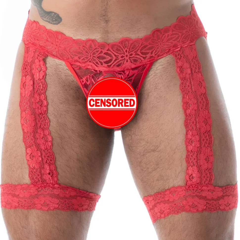 Pièce de lingerie masculine audacieuse et sensuelle, à mi-chemin entre jockstrap et chaps. Intégrant une jarretière, le jock chaps est entièrement conçue en fine dentelle transparente décorée d’un subtil motif floral. Coupe taille basse ajustée. Poche frontale non doublée. Fabrication française.
