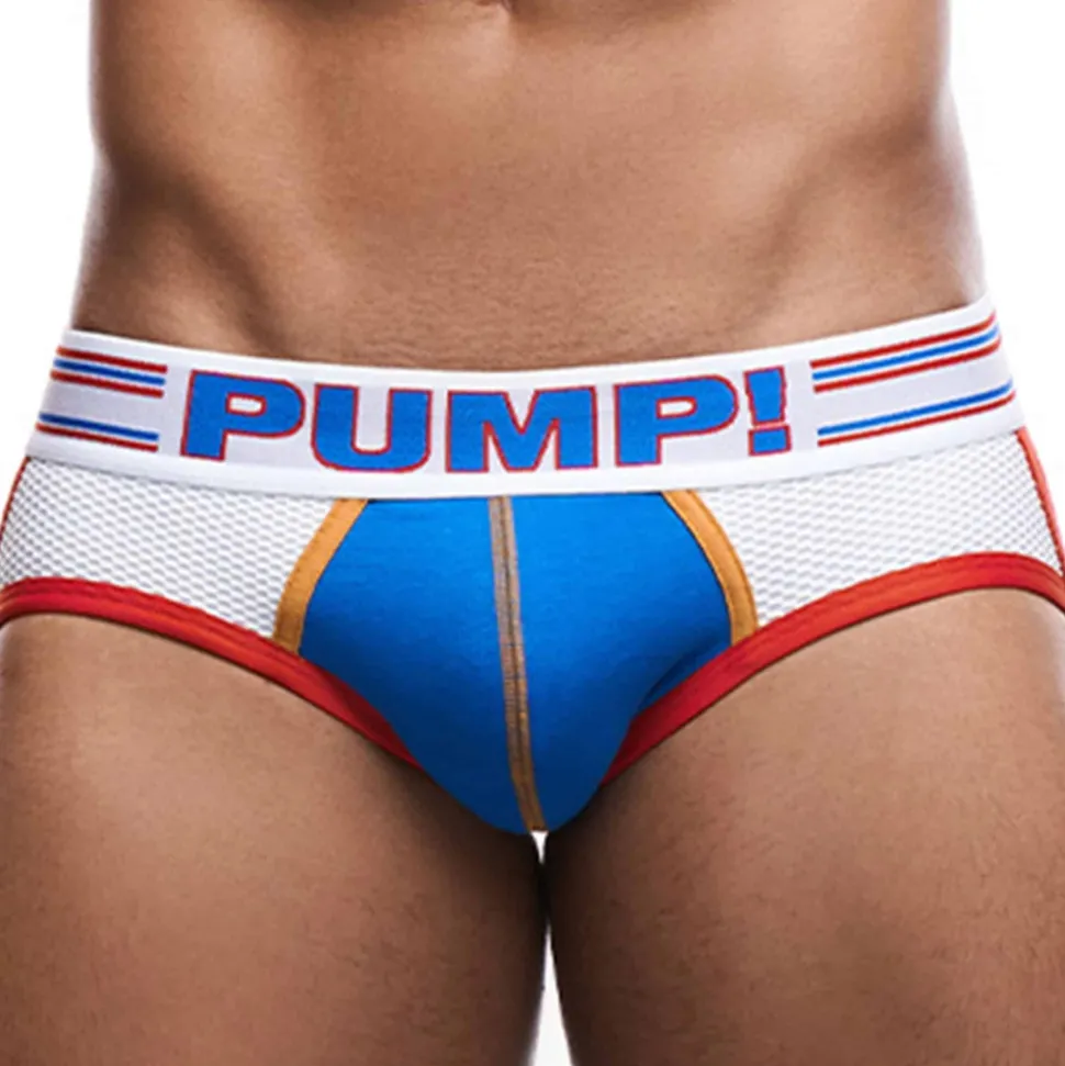 Jockstrap taille basse en coton stretch doux et confortable. Poche préformée et doublée. Empiècement en mesh sur les côtés. Bordures des cuisses élastiquées. Détails de couleur contrastée.Ceinture élastique large signée PUMP!.