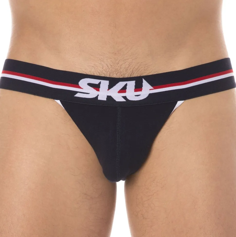 Jockstrap sport et sexy en coton premium doux et extensible de couleur intense. Coupe taille basse ajustée. Poche frontale préformée assurant un excellent maintien. Ceinture tricolore large et douce signée SKU. Bordures contrastées.