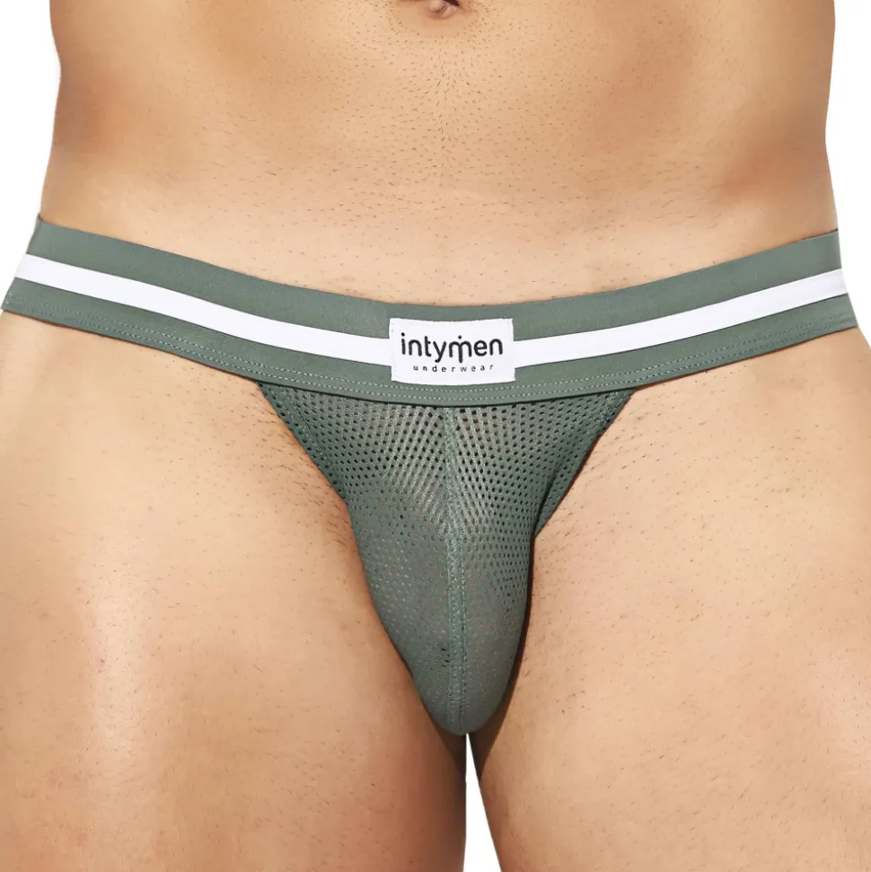 Jockstrap confortable en résille extensible, respirante, douce et légère. Poche frontale préformée non doublée. Détails de couleur contrastée. Processus de fabrication respectueux de l’environnement.