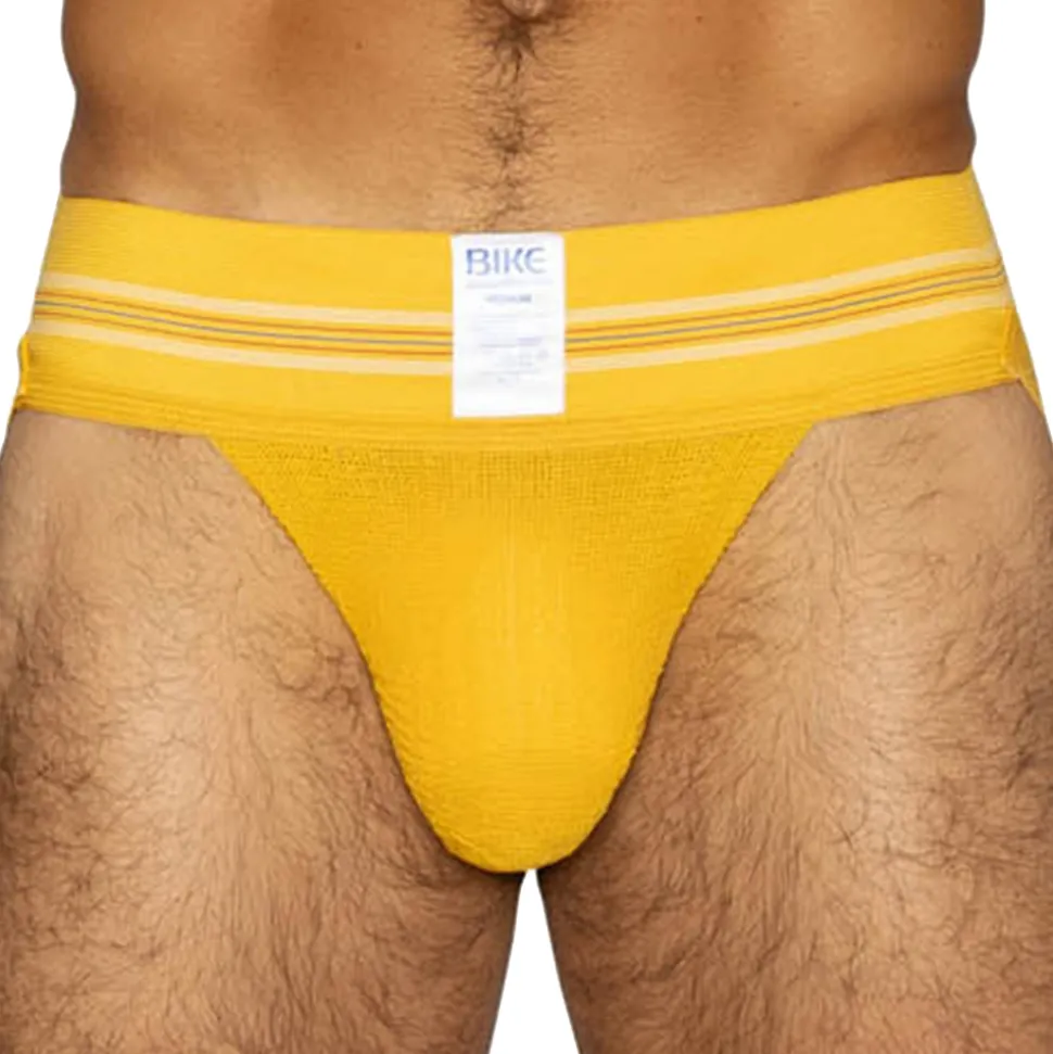 Jockstrap vintage directement inspiré de l’héritage de la marque. Tissu côtelé, léger, doux et respirant. Poche frontale assurant un maintien ferme et confortable. Coupe taille basse ajustée. Ceinture élastique extra-large signée BIKE.