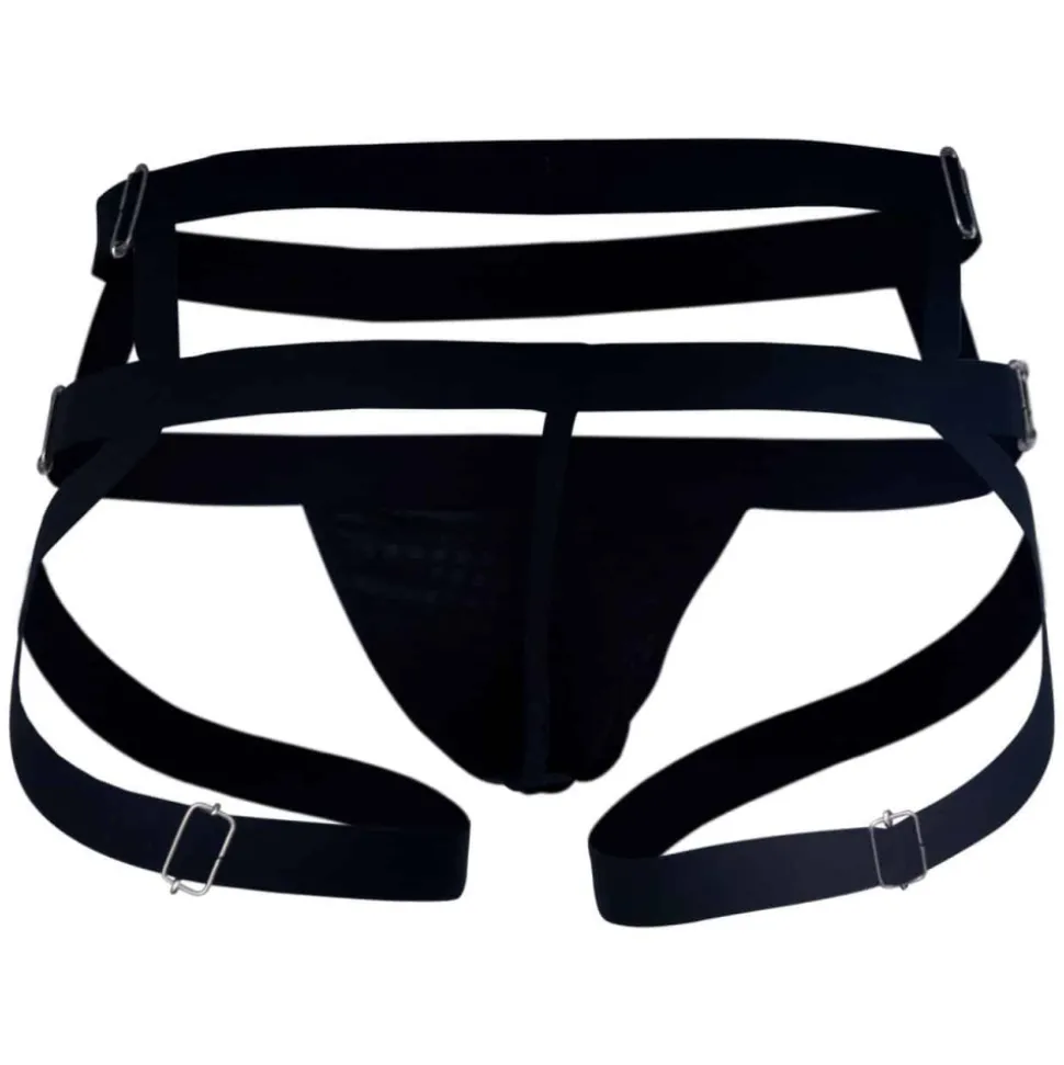 Jockstrap en microfibre stretch avec bandes élastiques ajustables. Straps supplémentaires pour soulever les fesses et leur donner un bel aspect bien rond. Poche frontale à pois ton sur ton.