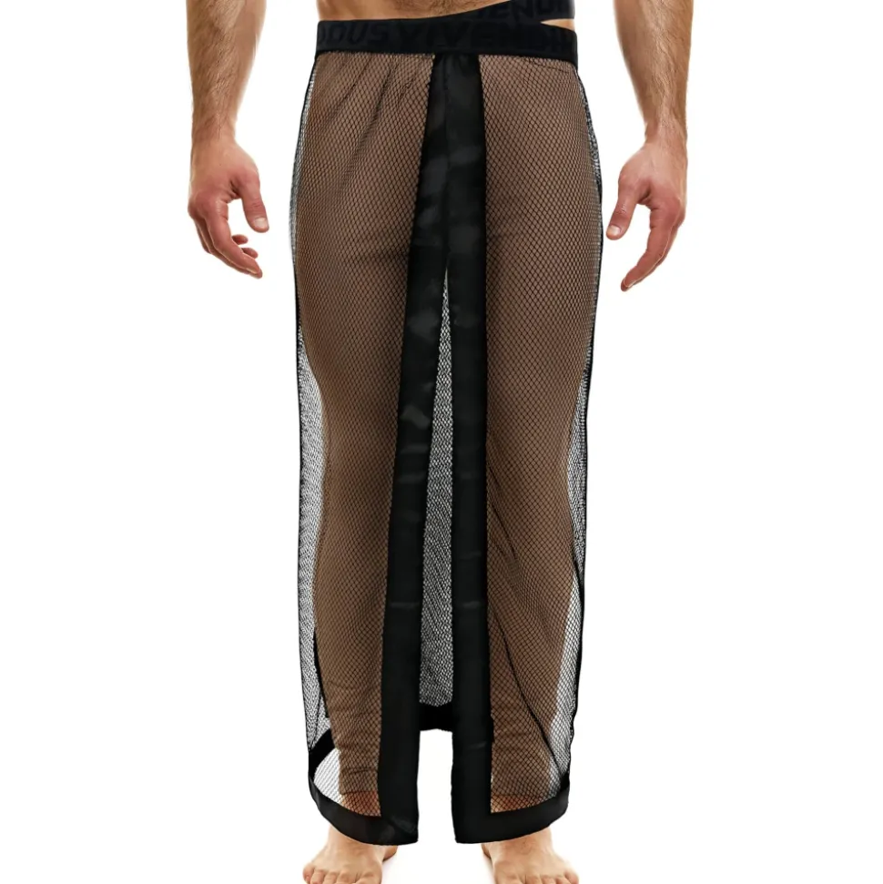 Jupe longue, audacieuse et luxueuse en résille extensible à large maille. Non doublée pour une totale transparence. Constituée de 2 panneaux distincts disposant chacun de sa ceinture élastique signée Modus Vivendi. Bordures satinées.