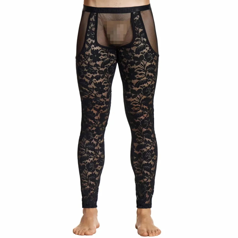 Legging semi-transparent en dentelle extensible décorée d’un motif floral. Coupe moulante très sexy. Inserts provocants en résille transparente. Ceinture élastique fine signée Modus Vivendi.