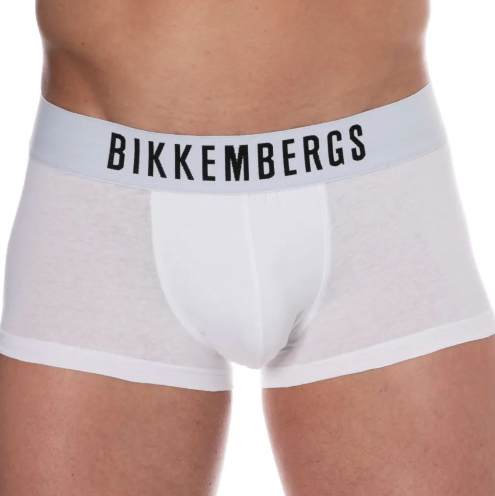 Lot de deux boxers en coton extensible, très doux et confortable. Poche frontale doublée. Ceinture élastique signée Bikkembergs.