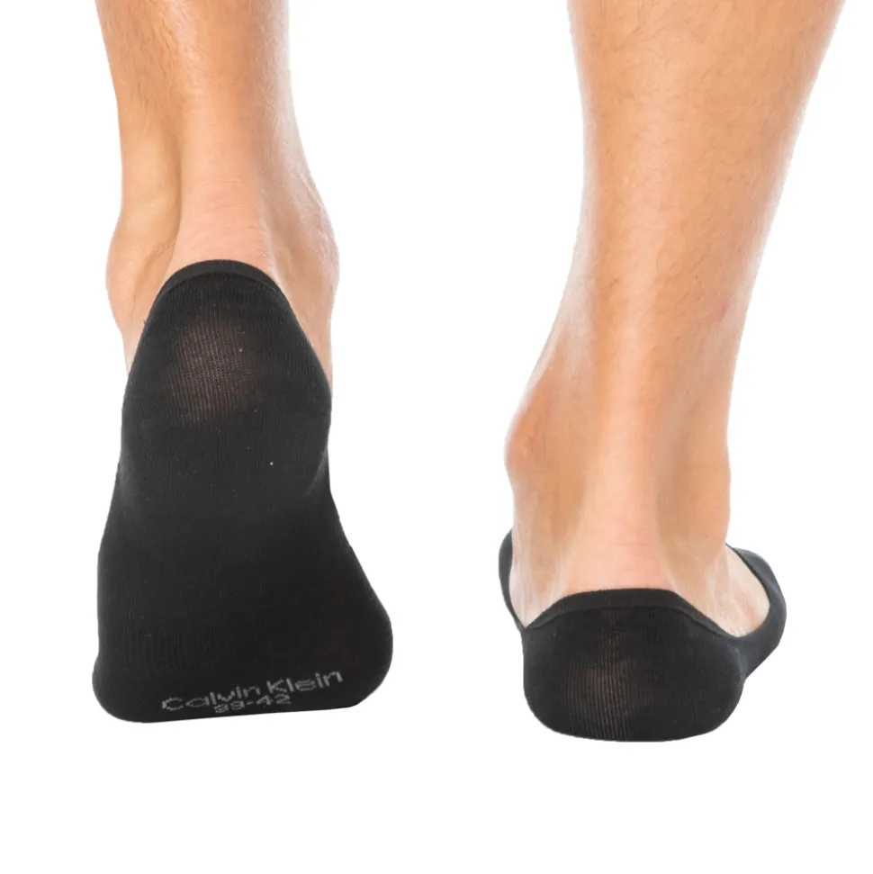 Lot de 3 paires de chaussettes invisibles en coton peigné doux et confortable. Coupe ne couvrant que partiellement le dessus du pied. Logo CK sur le pied. Talon antidérapant grâce aux fines bandes de silicone. 2 tailles : 39/42 et 43/46.