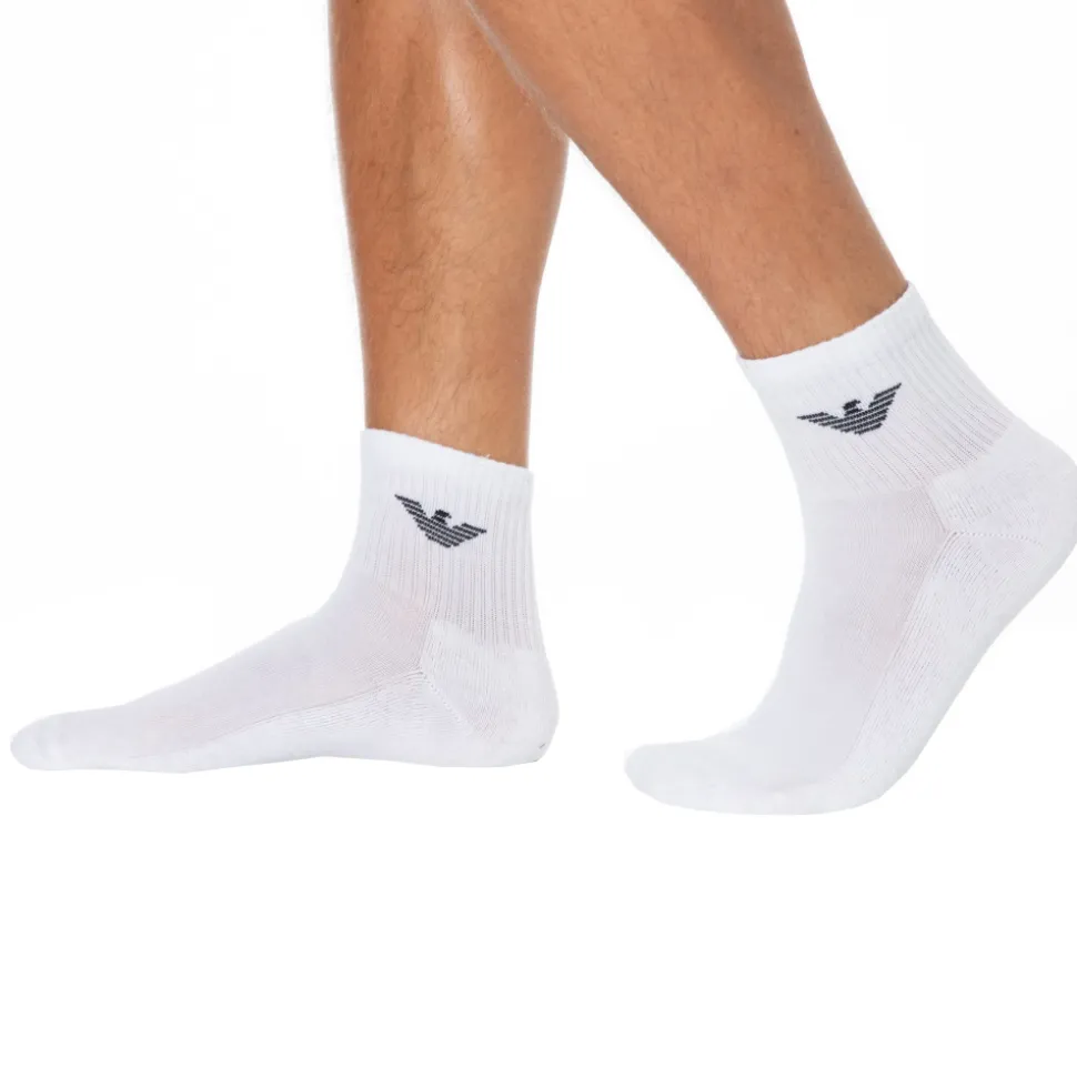 Lot de 3 paires de socquettes sport. Pointes, talons et semelles renforcées par un micro-coussin moelleux et confortable. Aigle Emporio Armani de couleur contrastée sur la cheville. Taille unique 39-46.