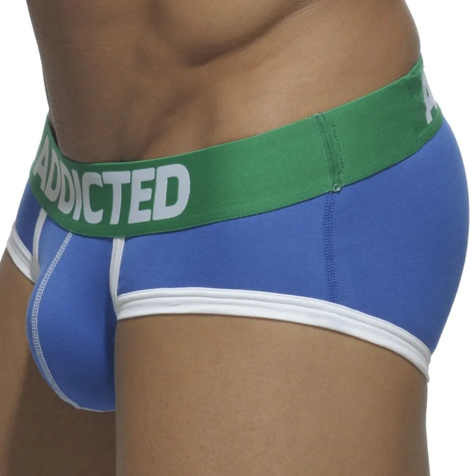 Lot de 3 slips en coton extensible doux et confortable, pour un usage au quotidien. Large poche frontale soulignée par la couture verticale. Bordures de couleur contrastée. Ceinture élastique signée Addicted.