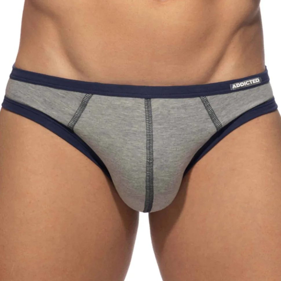 Lot de 3 slips bikini en coton extensible doux et confortable. Combinaisons de couleurs contrastées vives et stylées. Grande poche frontale. Ceinture élastique fine avec logo Addicted en silicone sur la taille gauche.