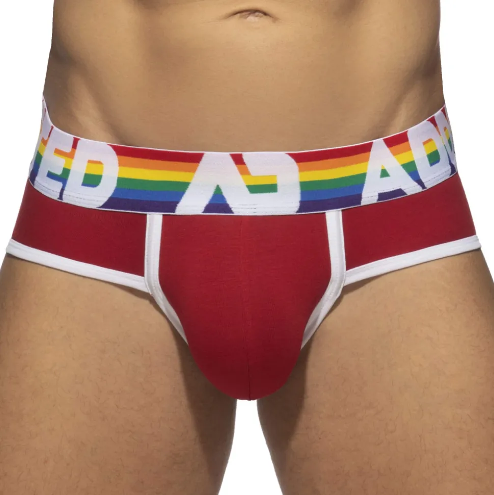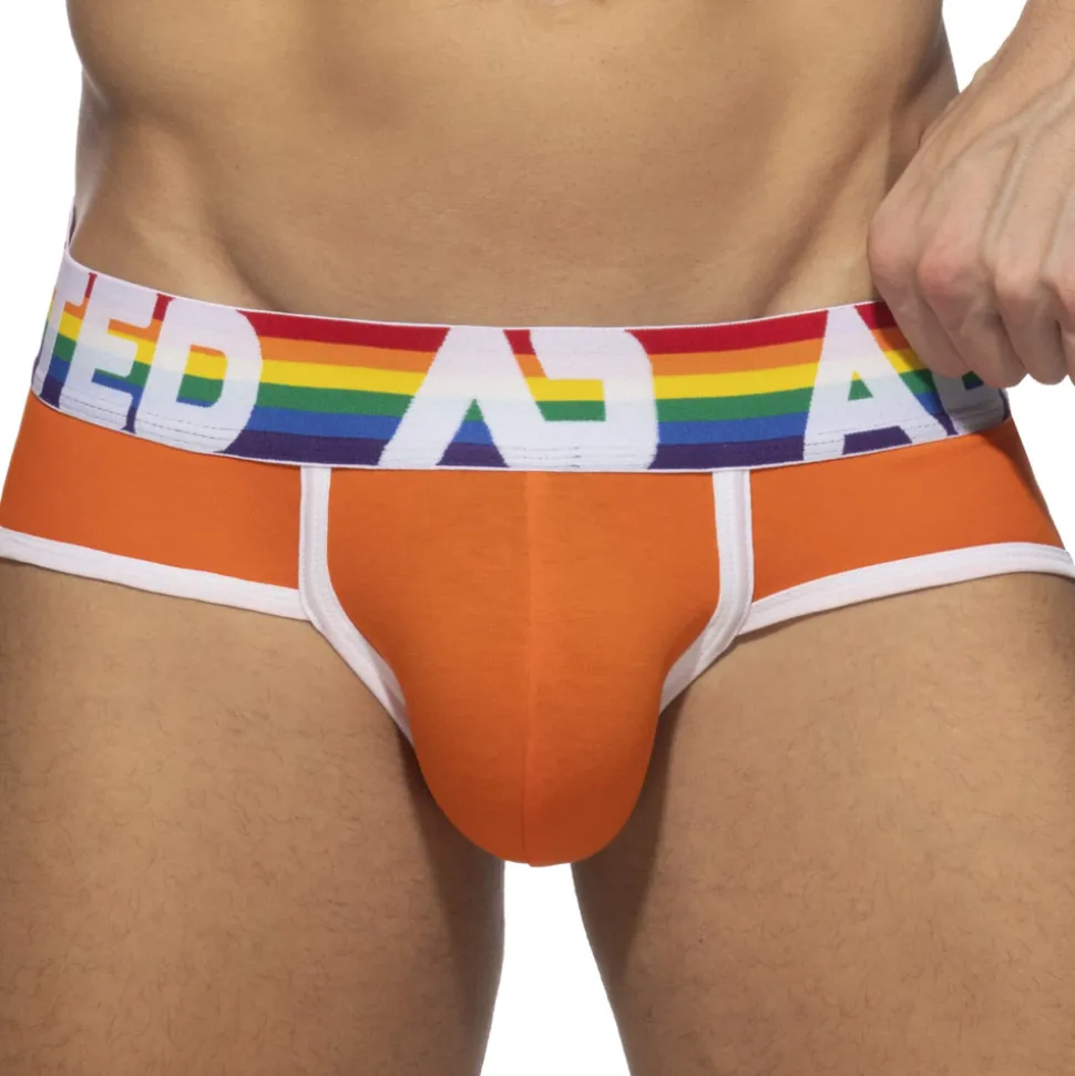 Lot de 6 slips taille basse très ajustés en coton doux et confortable de couleur intense. Belle poche frontale non doublée. Bordures contrastées. Ceinture Addicted extra large, aux couleurs de l’arc-en-ciel.