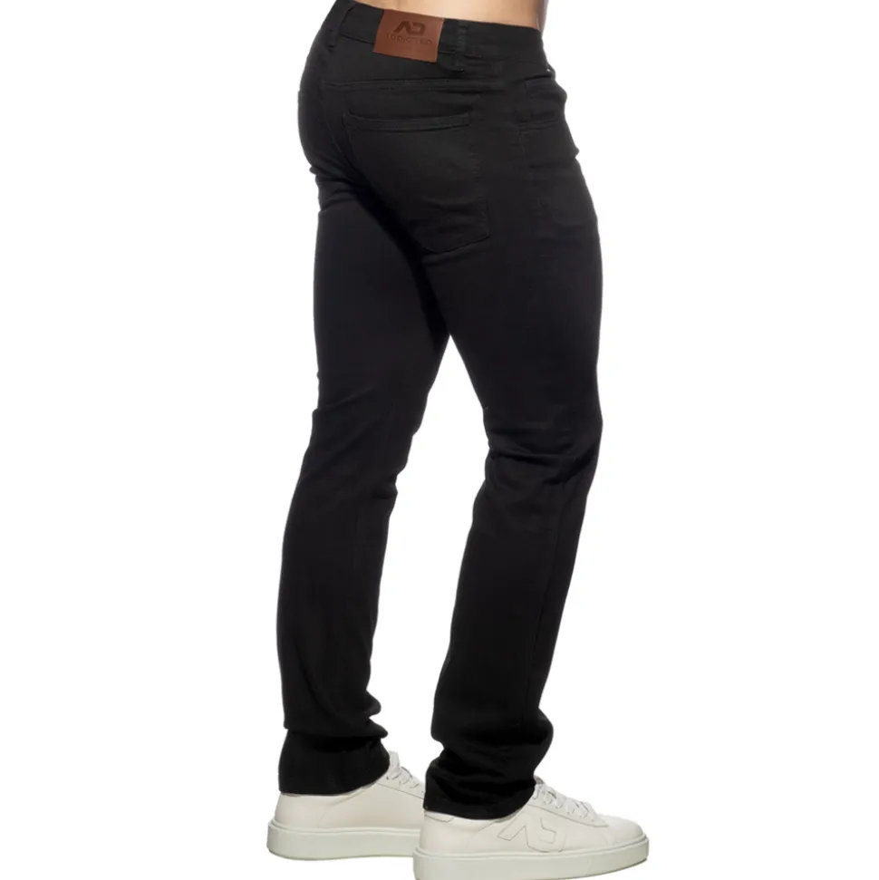 Pantalon en jeans très résistant et confortable en toile denim. Coupe droite et décontractée. 3 poches à l’avant et 2 poches à l’arrière. Braguette à fermeture Eclair et 1 bouton. Passants de ceinture. Etiquette Addicted à l’arrière. Taille US.