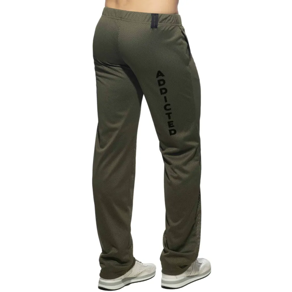 Pantalon sport en mesh. Doublure de couleur contrastée. 2 poches. Cordon de serrage sur la ceinture élastique. Petit logo sur la hanche gauche et inscription Addicted verticale à l’arrière de la jambe.