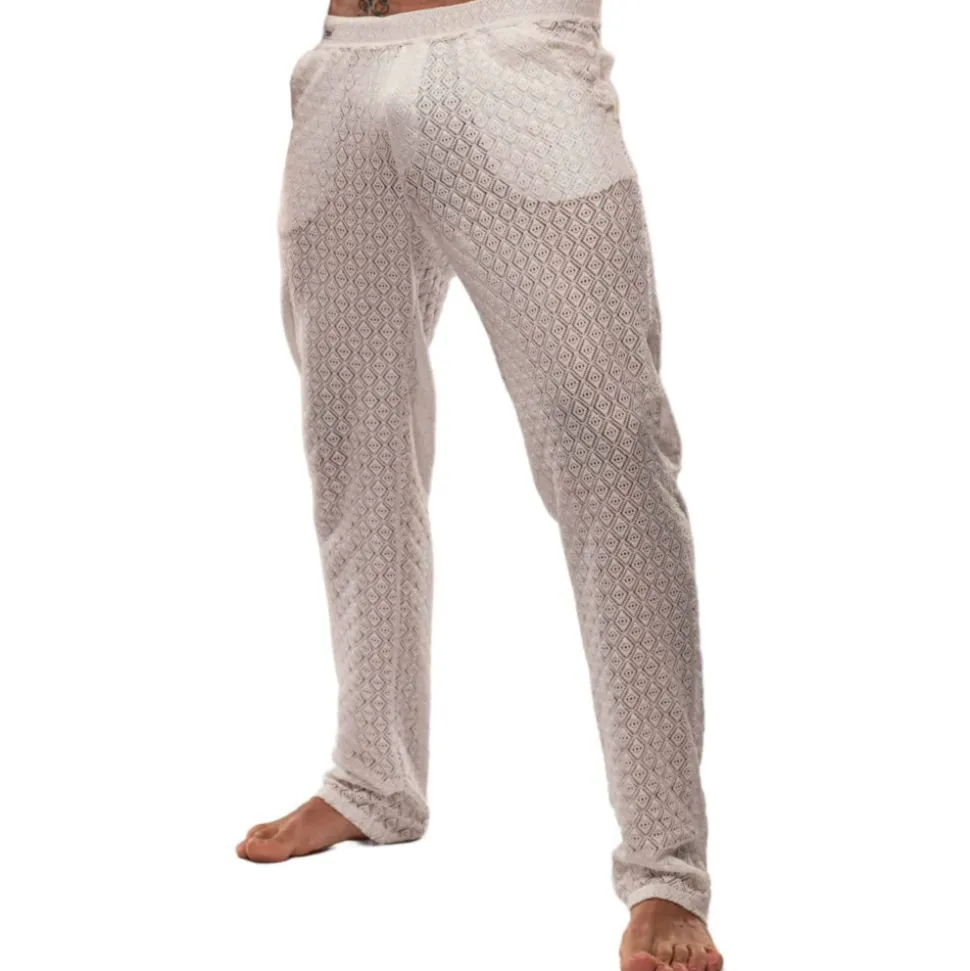Pantalon d’été en dentelle semi-transparente décorée d’un motif géométrique. Coupe taille basse, ample et confortable. 2 grandes poches. Ceinture élastique recouverte avec étiquette TOF Paris sur la hanche droite. Braguette factice. Fabrication française.