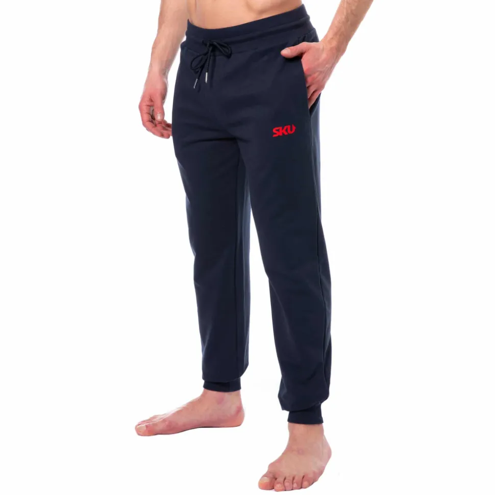 Pantalon sport en pur coton très doux et confortable. 2 poches. Ceinture élastique avec cordon de serrage. Bandes élastiquées au niveau des chevilles. Logo SKU de couleur contrastée sur la cuisse gauche. Veste vendue séparément.