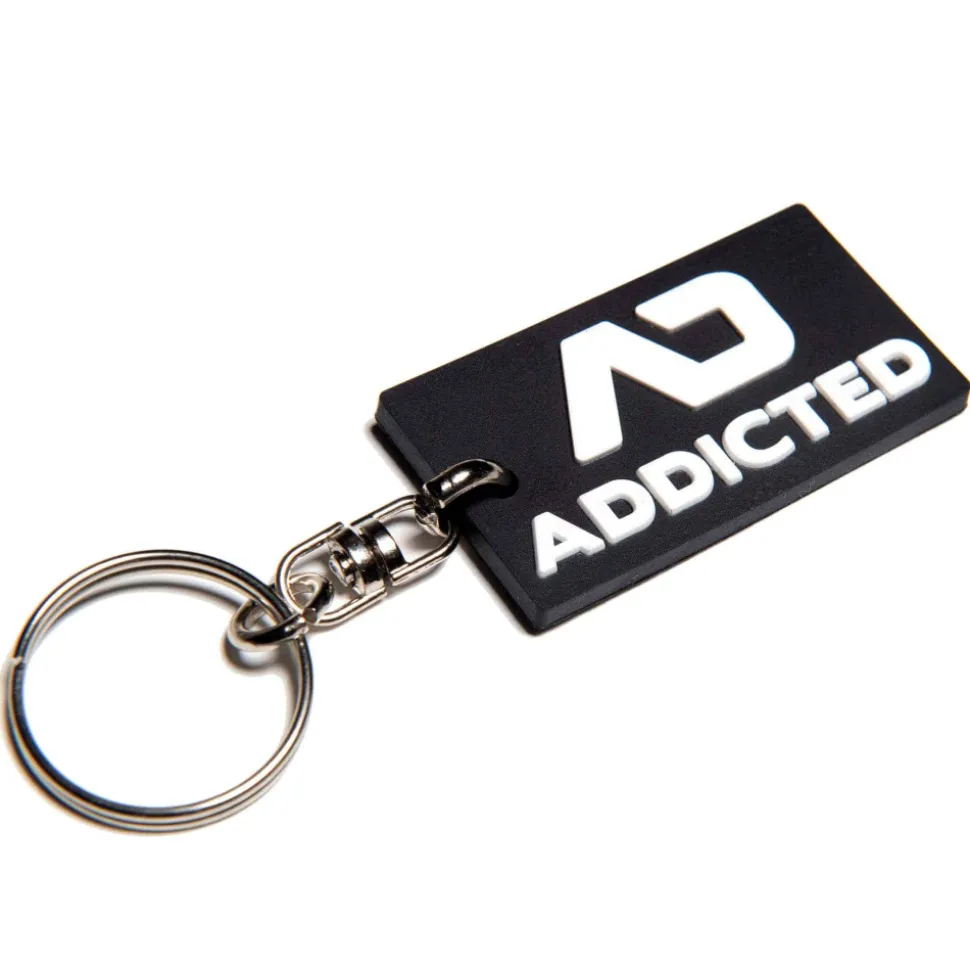 Porte-clés rectangulaire en résine solide et durable. Logo contrasté en relief. Attache et anneau en métal.