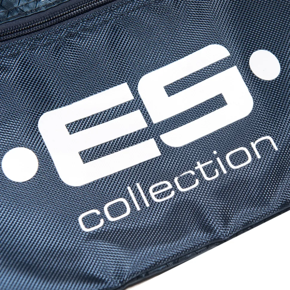 Sac de plage en microfibre légère. Grande poche extérieure zippée. Petite poche intérieure avec fermeture Eclair. Lanières réglables réglables pour fermer le sac et le porter sur le dos. Logo ES Collection. Dimensions : H 45 x L 36 cm.