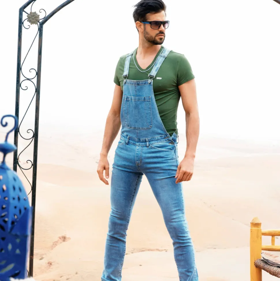 Salopette longue en jeans stretch à la coupe slim, sexy et très ajustée. Couture verticale derrière sur toute la hauteur de la jambe. 1 grande poche sur la poitrine avec 2 compartiments à stylos séparés. 2 poches à l’avant et deux à l’arrière. Bretelles réglables, détachables à l’aide de pinces en métal. Fermeture à double bouton de chaque côté. Braguette factice. 5 passants de ceinture. Etiquette SKU sur la poche arrière droite. taille US.