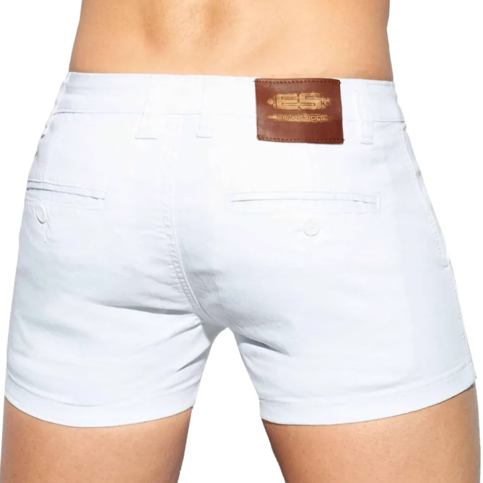 Short stretch en toile de coton de couleur unie. Coupe slim ajustée. 4 poches. Passants de ceinture. Braguette à fermeture Eclair et 1 bouton. Etiquettes ES Collection devant et derrière. Taille US.