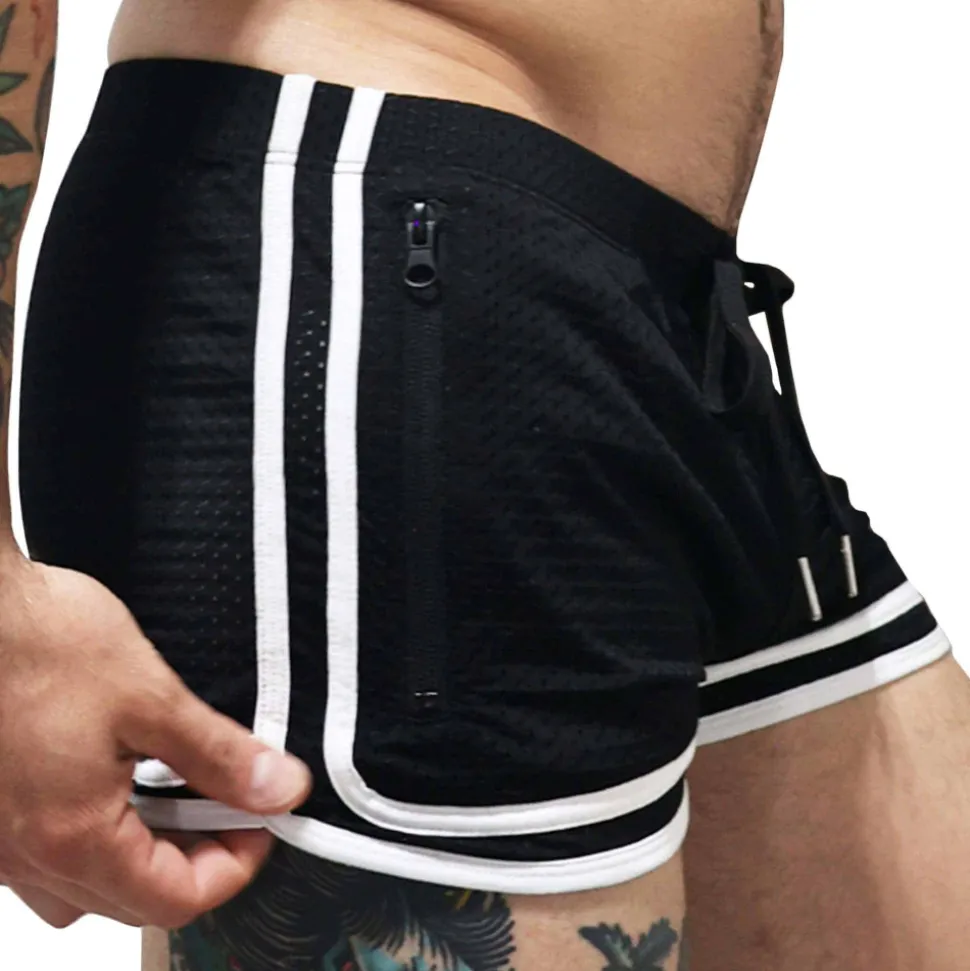 Short taille basse en microfibre perforée, douce et légère. 2 poches latérales zippées. Double bande sport. Ceinture élastique avec cordon de serrage. Logo Breedwell en PVC sur la cuisse gauche.