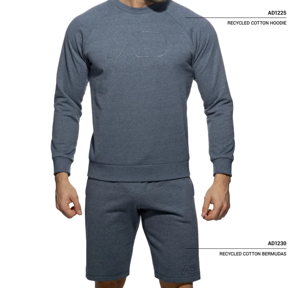 Short long en coton recyclé épais, super doux et confortable, pour passer l’hiver au chaud. Logo AD imprimé sur la jambe gauche. 2 poches. Ceinture élastique avec cordon de serrage.