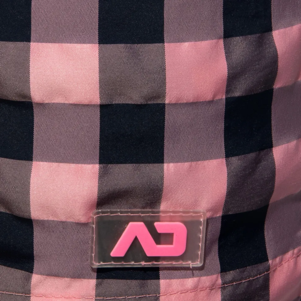 Short de bain taille basse en microfibre légère et confortable, séchant rapidement. Motif à carreaux de couleur intense. Slip intérieur U-Shape en mesh pour un grand confort. Deux poches avants et une poche arrière avec oeillet. Logo AD en silicone sur la cuisse gauche. Ceinture élastique avec cordon de serrage.