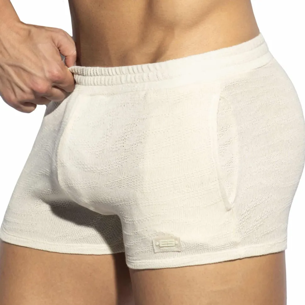 Short ultra léger et respirant fabriqué à partir de fils de coton recyclés. Deux poches latérales. Poche intérieure Kango pour un grand confort frontal. Ceinture élastique avec cordon de serrage intérieur. Logo ES Collection en silicone sur la jambe gauche.