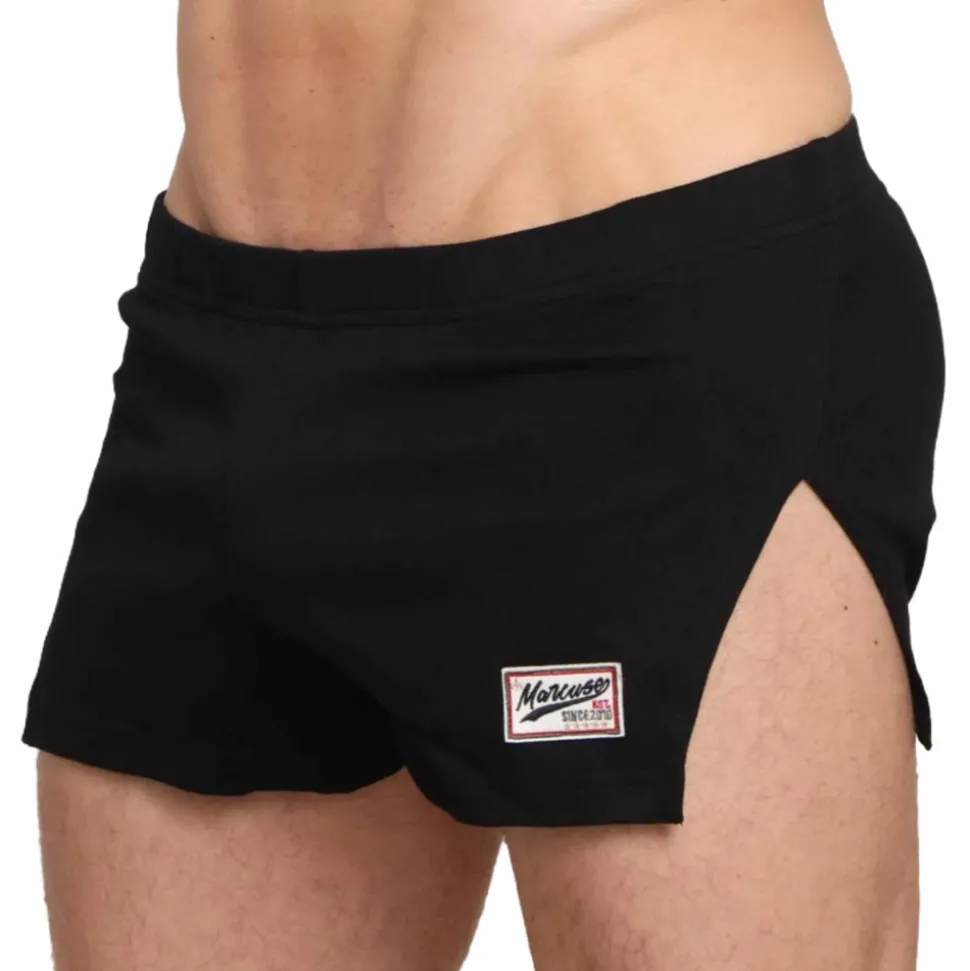 Short en coton extensible super doux pour un confort inégalé. Coupe taille basse avec des fentes très hautes sur les côtés pour une liberté totale de mouvement. Poche intérieure en mesh. Ceinture élastique recouverte. Patch Marcuse sur la cuisse gauche et logo brodé sur la fesse droite.