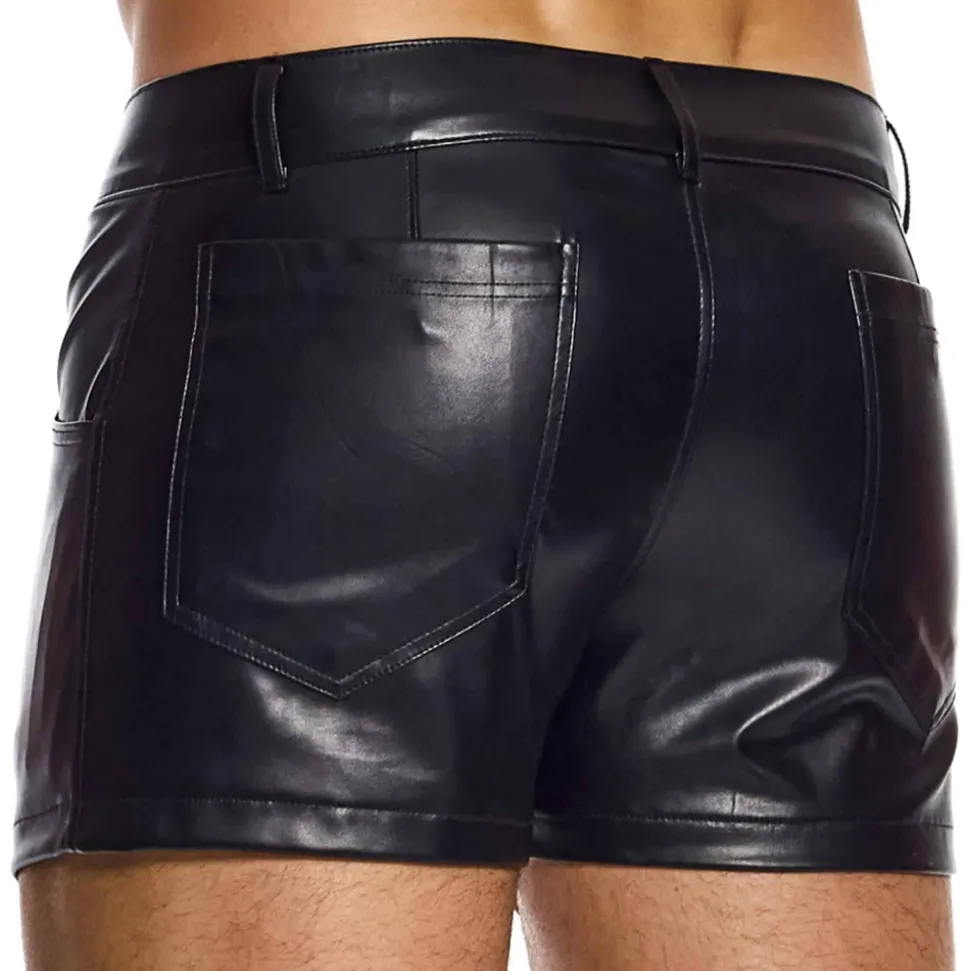 Short en microfibre imitant le cuir. Coupe slim taille basse. 5 poches. Braguette à bouton et fermeture Eclair. 5 passants de ceinture. Plaque métalique Modus Vivendi sur la hanche gauche.