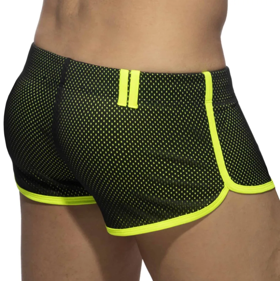 Short sport en mesh. Doublure de couleur contrastée. Cordon de serrage sur la ceinture élastique. Petit logo sur la hanche gauche. Détails de couleur contrastée.