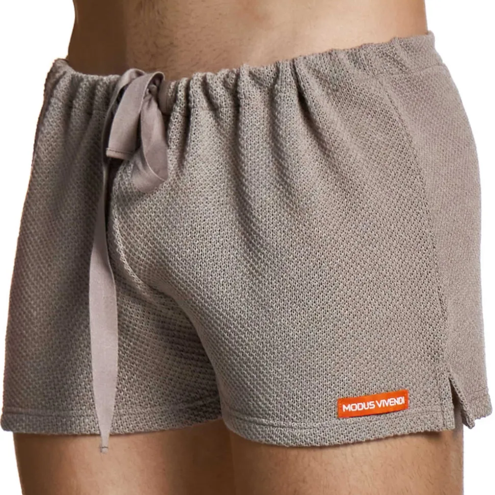 Short d’intérieur monochrome très sexy en maille tricotée fine. La matière en crochet dévoile sensuellement le corps en transparence. Coupe décontractée avec cordon de serrage. Etiquette Modus Vivendi cousue sur la cuisse gauche.