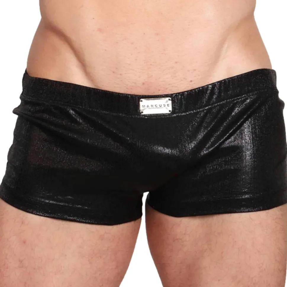 Brillez de mille feux pendant toute la soirée avec ce short sexy et audacieux en microfibre scintillante ! Coupe taille basse ultra courte. Ceinture élastique recouverte avec badge métallique Marcuse. Logo sur la fesse droite.