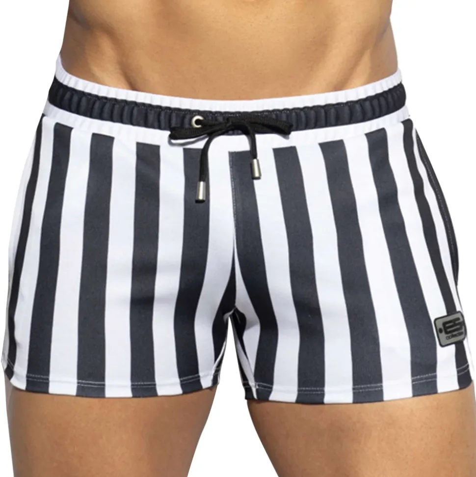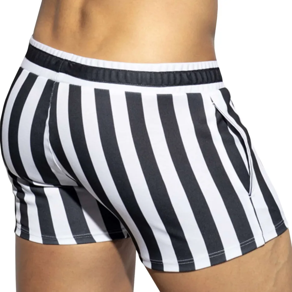 Short léger et confortable en microfibre douce. Larges rayures verticales. 2 poches latérales. Ceinture élastique avec cordon de serrage. Logo ES Collection en silicone sur la jambe gauche.