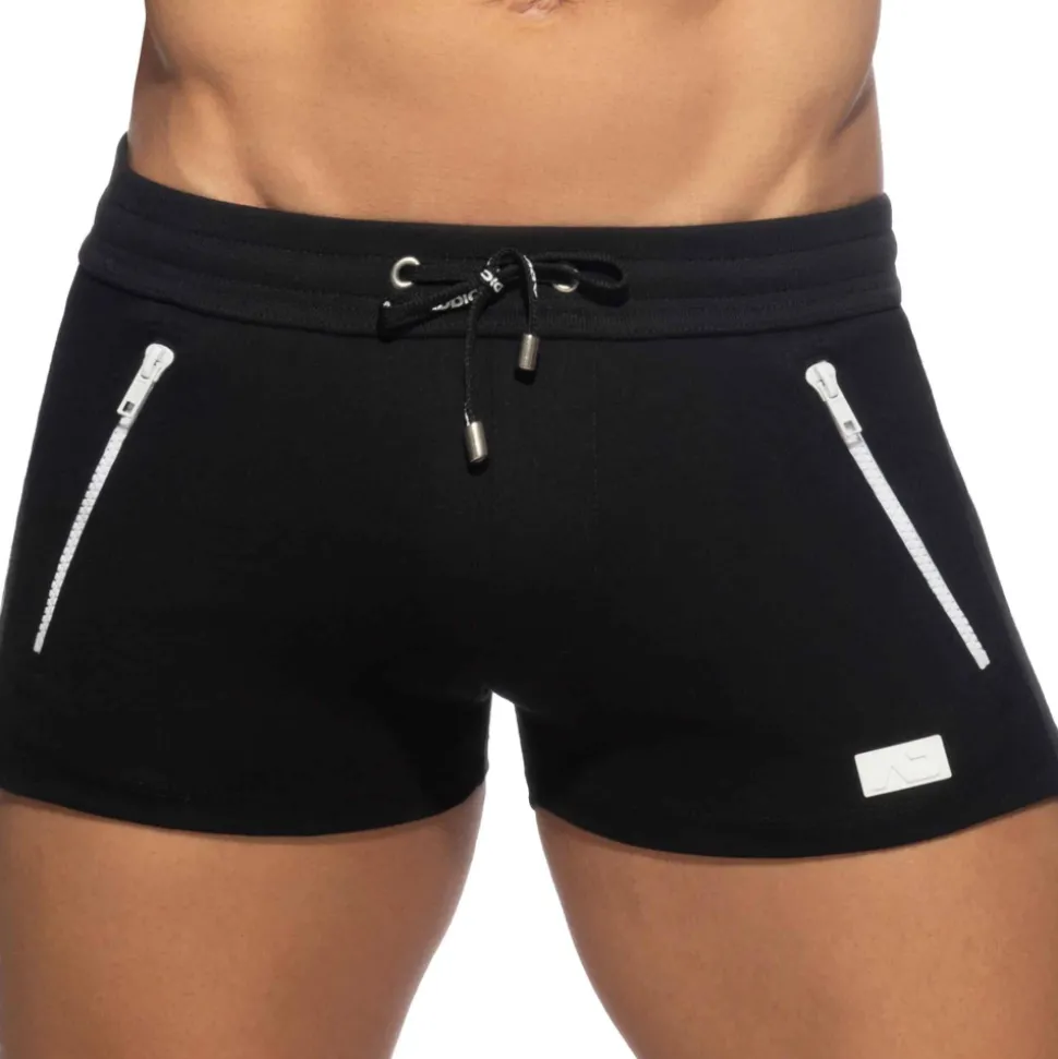 Short de sport de qualité premium. Double bande sport de couleur contrastée sur la jambe droite. 2 poches à fermeture Eclair. Logo Addicted en silicone sur la cuisse gauche. Ceinture élastique avec cordon de serrage.